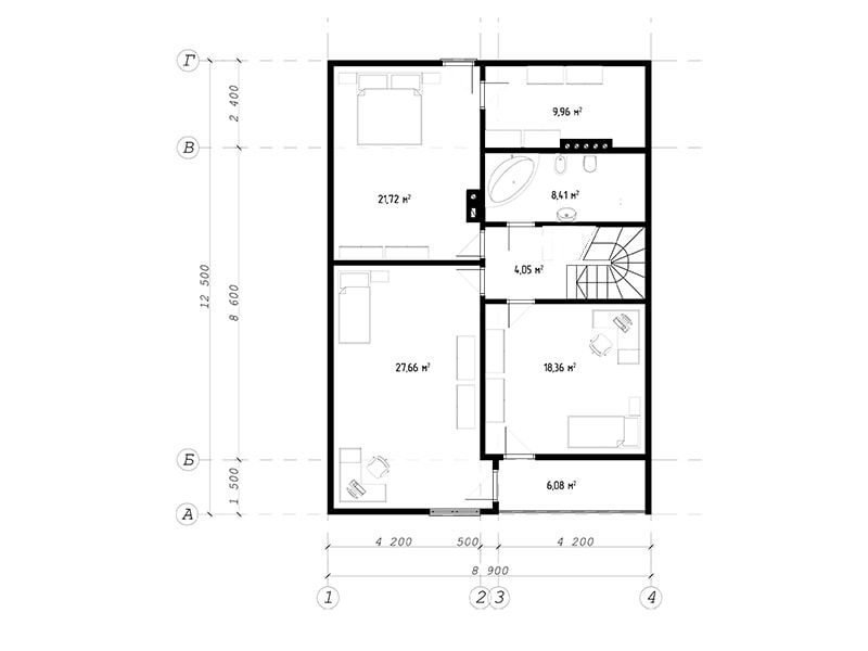 | Классический дом с мансардным этажом предназначен для семьи из 3-4 человек. На втором этаже 3 спальни, балкон и гардеробная. | ||