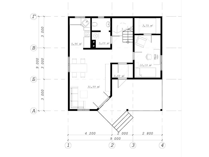 | Простой и функциональный жилой дом предназначен для семьи из 4 человек. На первом этаже гостиная (гостиная, кухня) и дополнительная комната с гардеробной, которые могут быть использованы в зависимости от ваших потребностей, как комната для гостей или офиса. На верхнем этаже расположены три спальни со шкафами и ванная комната. | ||